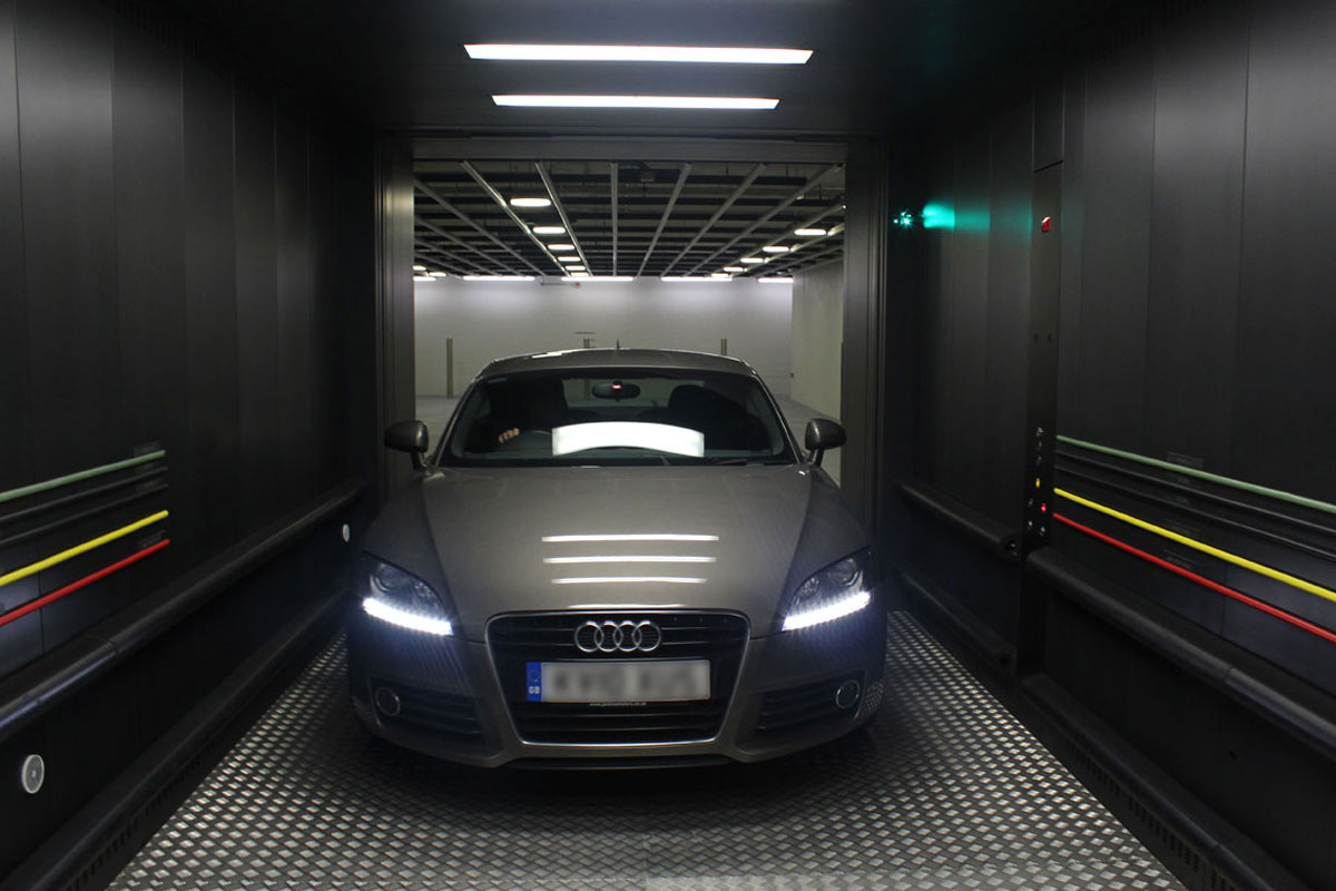 Kapı tipi olarak panjur tip ya da seksiyonel tip kapılar uygulanabilmekte olup hem asansör hem de kapılar uzaktan kumanda ile kontrol edilebilmektedir. Bu durum asansörün kullanımında kolaylık ve konfor sağlamaktadır. Araç asansörleri de hidrolik ve elektrik tahrikli olmak üzere iki tipte tasarlanıp uygulanabilmektedir.